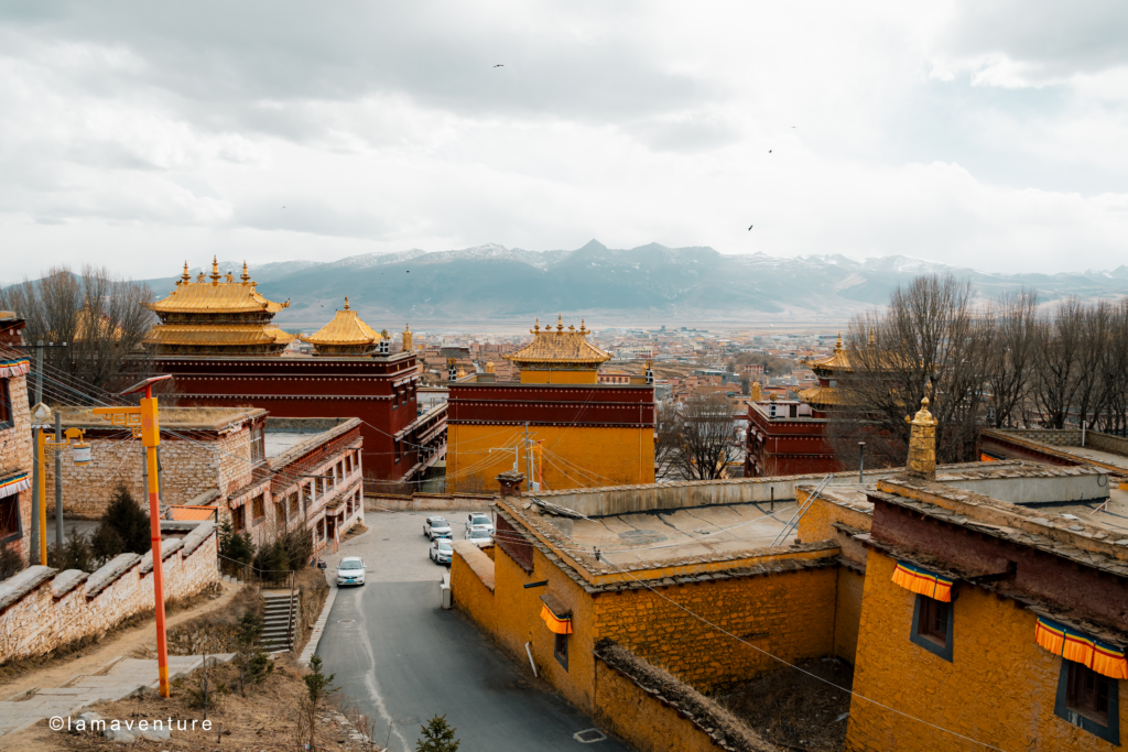 Route vers Tagong à travers une région riche en monastères tibétains, avec arrêts possibles en chemin. Visite du monastère de Lhagang, puis panorama sur le mont Yala au coucher du soleil.